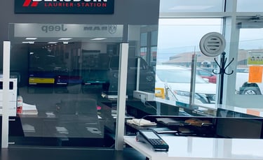 Installation de vitrage de protection chez un concessionnaire de la région